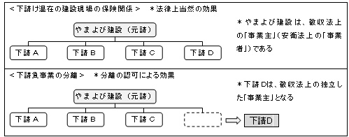 保険関係の適用事務や保険料の徴収・収納事務は「都道府県」を単位として行われており、このとき、近隣都道府県にまたがる建設の事業を行う事業主や全国展開する一般企業の事業主に係る保険料収納事務を、よりスムーズにするための制度である。