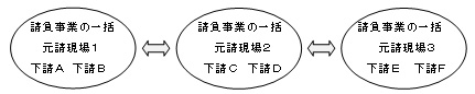□各元請現場を「支店、営業所等」と置き換えれば「継続事業の一括(法9条)」である。