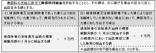 2) 葬祭料の支給を受けるべき者がない場合においては、葬祭を行った者に対し、葬祭料の金額(5万円)の範囲内においてその葬祭に要した費用に相当する金額の葬祭料を支給する。