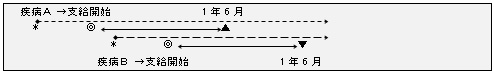 前に発生した疾病Aについて傷病手当金の支給期間が満了し、その後もなお、当該疾病Aの療養のため労務不能である者について、他の疾病Bが発生し、この後の疾病Bについて労務不能と考えられる場合には、疾病Aについての療養継続中ではあっても、疾病Bのみによって労務不能であるか否かについて判断され、疾病Bに係る傷病手当金が支給される(昭26.7.13保文発2349号)。