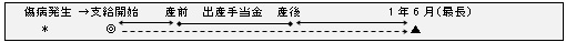 □出産手当金の支給が行われたために傷病手当金が支給されなかった期間がある場合であっても、傷病手当金の支給は、支給開始日より1年6月である。