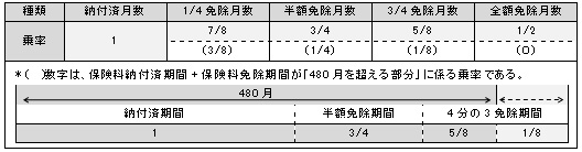 ◆保険料納付済期間と保険料免除期間の算定乗率のまとめ