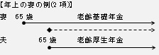 2) 大正15年4月2日から昭和41年4月1日までの間に生まれた者が65歳に達した日以後にその者の配偶者が前項イ又はロのいずれかに該当するに至った場合において、その当時その者がその者の配偶者によって生計を維持していたときは、その者に対する老齢基礎年金の額は、本来の規定に定める額に加算額を加算した額とする。ただし、その者が同項ただし書に該当するときは、加算しない。