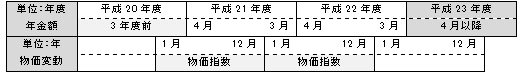 □*1「物価変動率」とは、当該年度の初日の属する年の前々年の物価指数(総務省において作成する年平均の全国消費者物価指数をいう)に対する当該年度の初日の属する年の前年の物価指数の比率をいう。