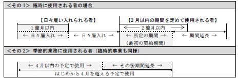 継続して6月を超えて使用されるべき場合は、初めから被保険者となる。 |