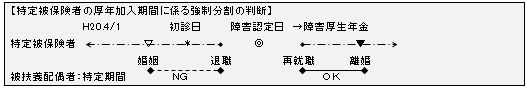 □障害厚生年金の受給権者である特定被保険者の被扶養配偶者が3号分割標準報酬改定請求をする場合における特定期間に係る被保険者期間については、当該障害厚生年金の額の計算の基礎となった特定期間に係る被保険者期間を除くものとする(令3条の12の11)。