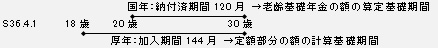【事例】 受給資格期間を満たす昭和21年4月2日生まれの者(国民年金の加入可能年数は40年間であり、定額単価の調整対象とならない者)が、18歳から30歳直前までの12年間(144月)について、厚生年金保険の被保険者期間を有する場合。