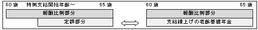 3) 特例老齢年金は、厚生年金保険法の規定の適用については、60歳台前半の老齢厚生年金とみなす*3。