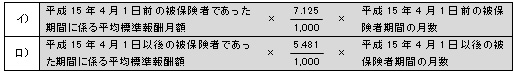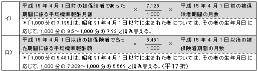 □被保険者であった期間の全部又は一部が平成15年4月1日前であるときは、それぞれの期間ごとに計算した額を合算した額の4分の3に相当する額となる。