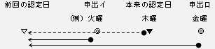 失業の認定日の変更規定により失業の認定が行われたときは、その後における最初の失業の認定日における失業の認定は、当該申出を受けた日から当該失業の認定日の前日までの各日について行うものとする(則24条3項)。