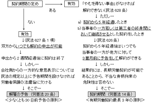 □労働契約を締結する場合、その契約の有効期間の定めの有無については、労使間で約束しておかなければならない(法15条1項)ことになっている。