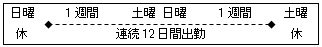 a) 原則的な労働日数の限度:「6日」 b) 特定期間における当該日数の限度:1週間に1日の休日が確保できる日数(「12日」)