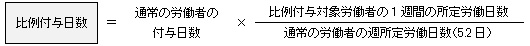 次に掲げる労働者(1週間の所定労働時間が30時間以上の者を除く)の有給休暇の日数については、前2項の規定にかかわらず、これらの規定による有給休暇の日数を基準とし、通常の労働者の1週間の所定労働日数として厚生労働省令で定める日数(「5.2日」、イにおいて「通常の労働者の週所定労働日数」という)と当該労働者の1週間の所定労働日数又は1週間当たりの平均所定労働日数との比率を考慮して厚生労働省令で定める日数*1とする。