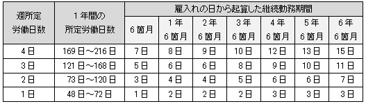 ロ) 週以外の期間によって所定労働日数が定められている労働者については、1年間の所定労働日数が2l6日以下の者