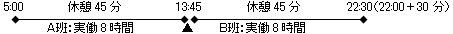 *「交替制によって労働させる事業」とは、事業全体として、実働8時間、休憩45分の2交替制(早出勤務と遅出勤務)を採用している場合をいう。