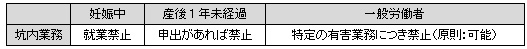 イ) 妊娠中の女性及び坑内で行われる業務に従事しない旨を使用者に申し出た産後1年を経過しない女性*1:坑内で行われるすべての業務