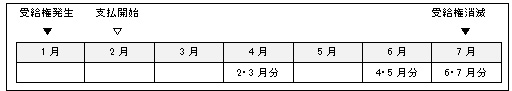 □*1 「支給すべき事由が生じた月」とは、年金受給権が生じた日の属する月のことで、月の初日であれ末日であれ、その「翌月分」から支払いが始まる。