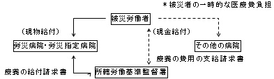 【給付内容の特徴】 a) 給付方法は、「現物給付」と「現金給付」のいずれの方法で受けるかという選択の余地はなく、あくまでも「現物給付」を原則とする(平1択) (平21択) b) 給付対象は、「移送」を除き、健康保険法(療養の給付)の範囲と同じである c) 被災労働者や事業主の医療費負担(一部負担金等)はない d) 療養期間に制限はない(治ゆするか死亡するまで) e) 療養補償給付は、治ゆ後の「再発」についても再開される