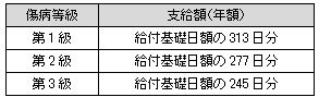 □*2 傷病補償年金は、「厚生労働省令で定める傷病等級」に応じ、別表第1に規定する額とする(法18条1項)。(平3択) (平21択) (平2記)