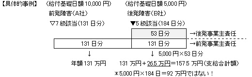 悪化した障害状態に基づく補償額の決定方法を規定しておく必要があることから、今回のアクシデントによる支給部分について、既存障害に係る従前額との差額部分を支給することとされている。