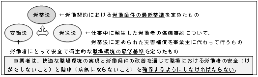 この法律は、昭和47年に、急激に変化する産業社会の実態に災害防止対策が即応すべく、労働基準法の「安全及び衛生」の章と労働災害防止団体等に関する法律の「労働災害防止計画」及び「特別規制」を統合したものを母体とし、新たに規制事項や国の援助措置等の規定を加える形で制定されました。
