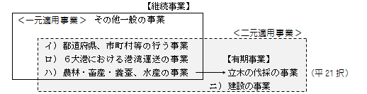 「有期事業」としての取扱いは、労災保険に係る保険関係についてのみであり、雇用保険に係る保険関係についてはこうした事業区分の取扱いはしない。