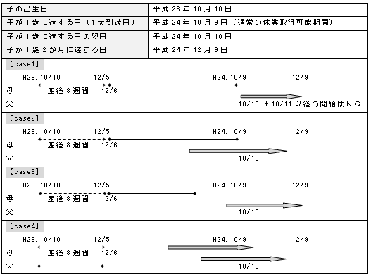 労働者の育児休業の開始予定日までに、配偶者が育児休業をしなかった場合の取扱いは、以下のとおりとなる。