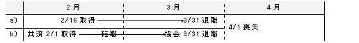 a)の場合:被保険者期間は「2月」であるが、被保険者であった期間が2月未満であるためNG。