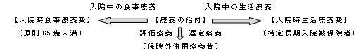 イ) 食事の提供である療養であって前項ホ(病院又は診療所への入院)に掲げる療養と併せて行うもの(特定長期入院被保険者に係るものを除く*1、以下「食事療養」という)