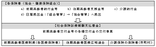 医療保険各制度の保険料と併せて徴収した介護保険料を、「医療保険各制度の保険者」が納付するものである。