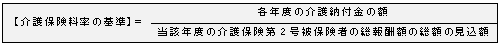 介護保険料率は、各年度において保険者が納付すべき介護納付金(日雇特例被保険者に係るものを除く)の額(協会が管掌する健康保険においては、その額から国庫補助額を控除した額)を当該年度における当該保険者が管掌する介護保険第2号被保険者である被保険者の総報酬額の総額の見込額で除して得た率を基準として、保険者が定める。 (平18選)