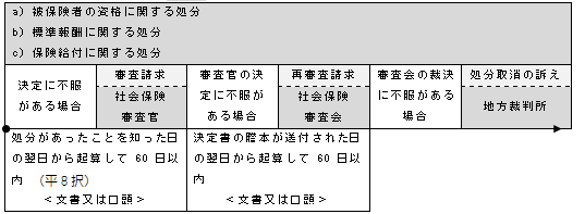 1) 被保険者の資格、標準報酬又は保険給付に関する処分に不服がある者は、社会保険審査官に対して審査請求をし、その決定に不服がある者は、社会保険審査会に対して再審査請求をすることができる。