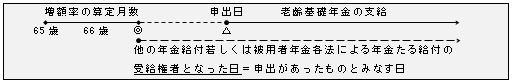 66歳に達した日後に他の年金給付若しくは被用者年金各法による年金たる給付の受給権者となった者が、他の年金給付若しくは被用者年金各法による年金たる給付を支給すべき事由が生じた日(以下「受給権者となった日」という)以後支給繰下げの申出をしたときは、受給権者となった日において、当該申出があったものとみなす。(平21択)