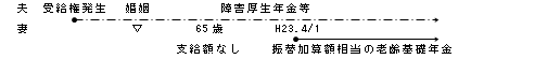 □大正15年4月2日から昭和41年4月1日までの間に生まれた者が65歳に達した日以後にその者の配偶者が前条1項のイ又はロのいずれかに該当するに至った場合においても、第1項と同様の要件を満たすとき、老齢基礎年金が支給される