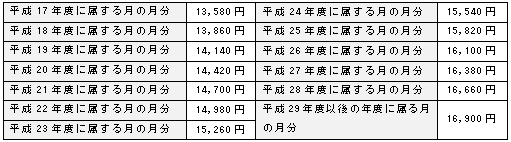 3) 保険料の額は、次の表に掲げる月分についてそれぞれ同表に定める額に保険料改定率を乗じて得た額(その額に5円未満の端数が生じたときは、これを切り捨て、5円以上10円未満の端数が生じたときは、これを10円に切り上げるものとする)とする。(平17択)(平19選)