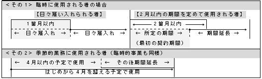 □*2「所在地が一定しない事業所」に使用される者は、使用期間の長短にかかわらず被保険者とならない。