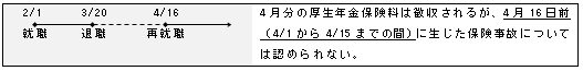 2) 被保険者の資格を取得した月にその資格を喪失したときは、その月を1箇月として被保険者期間に算入する。但し、その月にさらに被保険者の資格を取得したときは、この限りでない。(平2択)(平15択)