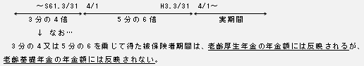 施行日から平成3年4月1日前の第3種被保険者等であった期間につき厚生年金保険の被保険者期間を計算する場合には、本来の規定によって計算した期間に5分の6を乗じて得た期間をもって厚生年金保険の被保険者期間とする。