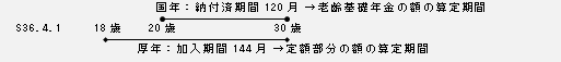 【事例】 受給資格期間を満たす昭和21年4月2日生まれの者(国民年金の加入可能年数は40年間であり、定額単価の調整対象とならない者)が、18歳から30歳直前までの12年間(144月)について、厚生年金保険の被保険者期間を有する場合。