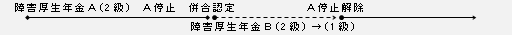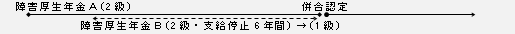 1) 期間を定めて支給を停止されている障害厚生年金(その権利を取得した当時から引き続き障害等級の1級又は2級に該当しない程度の障害の状態にある受給権者に係るものを除く)の受給権者に対して更に障害厚生年金(障害等級1級又は2級に限る)を支給すべき事由が生じたときは、前条第1項の規定により支給する前後の障害を併合した障害の程度による障害厚生年金は、従前の障害厚生年金の支給を停止すべきであった期間、その支給を停止するものとし、その間、その者に従前の障害を併合しない障害の程度による障害厚生年金を支給する。