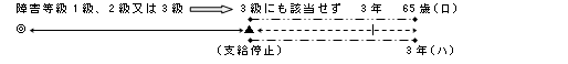 ロ) 障害等級に該当する程度の障害の状態にない者が、65歳に達したとき。ただし、65歳に達した日において、障害等級に該当する程度の障害の状態に該当しなくなった日から起算して障害等級に該当する程度の障害の状態に該当することなく3年を経過していないときを除く。 (平7択)(平16択)