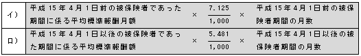□被保険者であった期間の全部又は一部が平成15年4月1日前であるときは、それぞれの期間ごとに計算した額を合算した額の100分の200に相当する額となる。