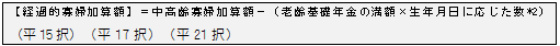受給権者の生年月日による加入可能な期間によっては、65歳を前後して年金額の急激な低下が生ずることが考えられるため、中高齢寡婦加算額の水準を保障する趣旨で設けられている。