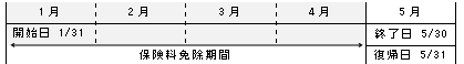 休業等開始日を「資格喪失日」と、職場復帰日を「資格取得日」と考えるとわかりやすい。つまり、資格喪失月は保険料が不要であるし、資格取得月は保険料が必要であるということを免除「される」と「されない」に置き換えればよい。