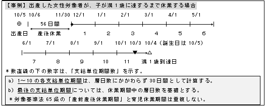 「支給単位期間」とは、育児休業をした期間を、当該休業を開始した日又は各月においてその日に応当し、かつ、当該休業をした期間内にある日(その日に応当する日がない月においては、その月の末日とし、以下「休業開始応当日」という)から各翌月の休業開始応当日の前日(当該休業を終了した日の属する月にあっては、当該休業を終了した日)までの各期間に区分した場合における当該区分による一の期間をいう。